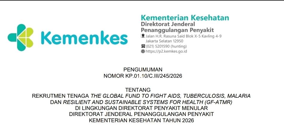 PENGUMUMAN PENERIMAAN REKRUTMEN TENAGA DIGITALISASI PENCATATAN DAN PELAPORAN PROGRAM IMUNISASI TAHUN 2026