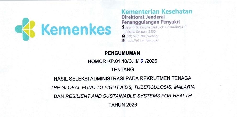 Pengumuman Rekrutmen Tenaga Program Global Fund (GF-ATMR) Tahun 2026